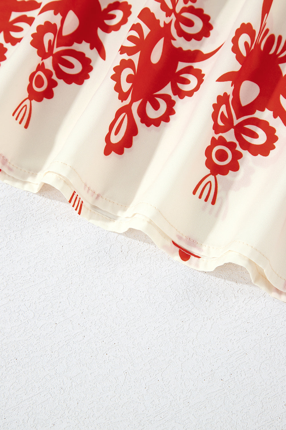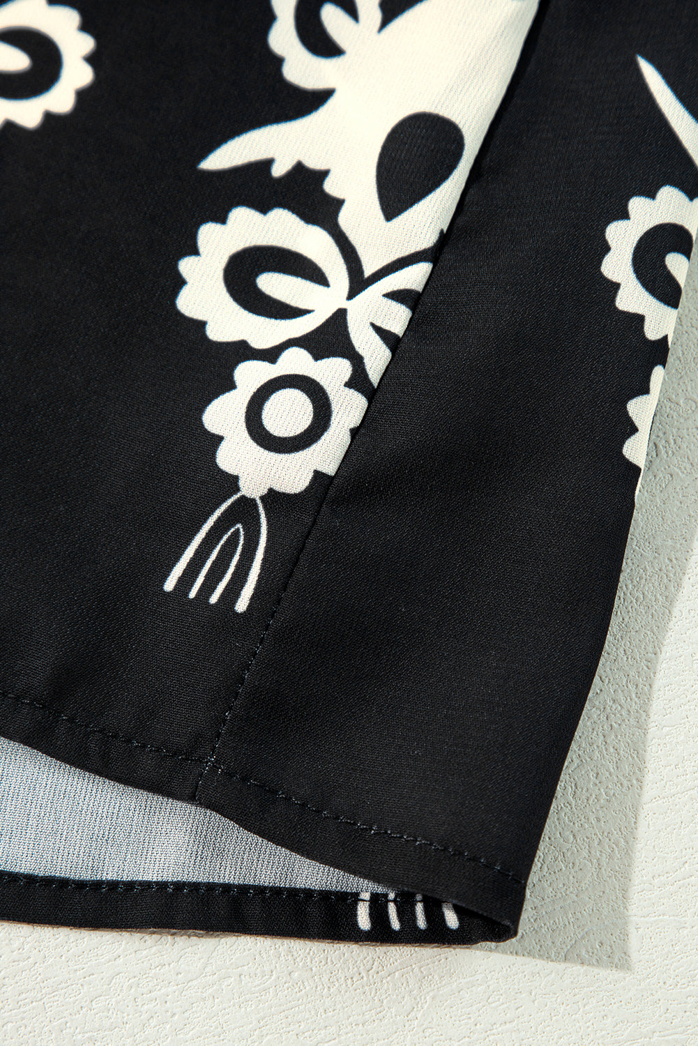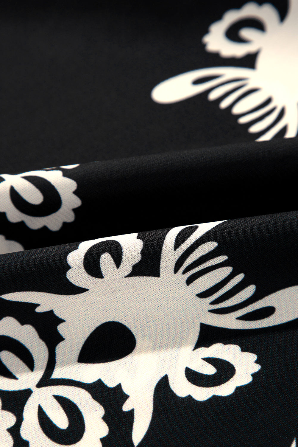 Vintage Geometric Printed 3/4 Sleeve V Neck Blouse