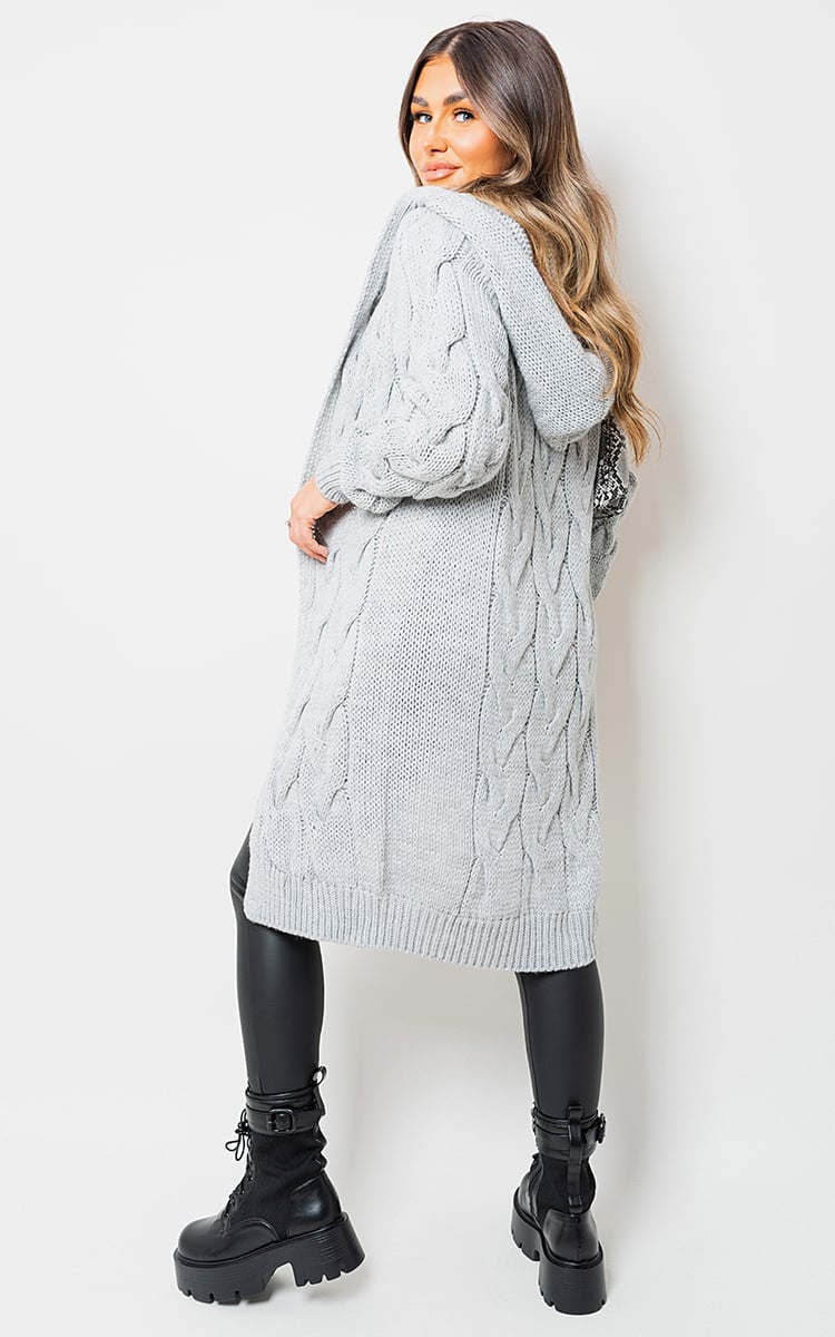 Chunky Cable Knitted Oversized Longline Hooded Cardigan