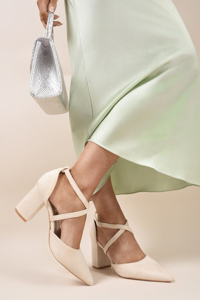 These heels are the perfect mix of chic and comfy. Featuring a cross-strap design and block heel, they're ideal for dressing up your everyday or finishing a night-out look. So easy to style.