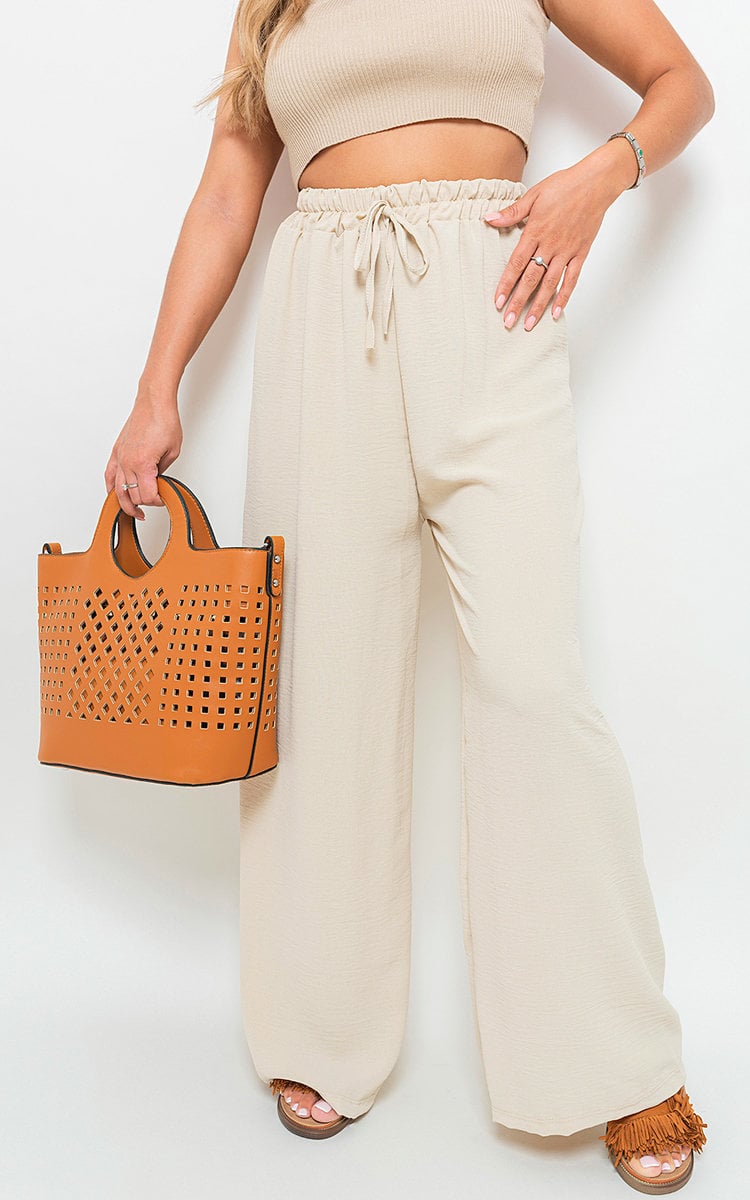 Introducing the Mollie Drawstring Gathered Waist Wide Leg Trouser, a trendy and comfortable piece that combines style and versatility! πΈπ