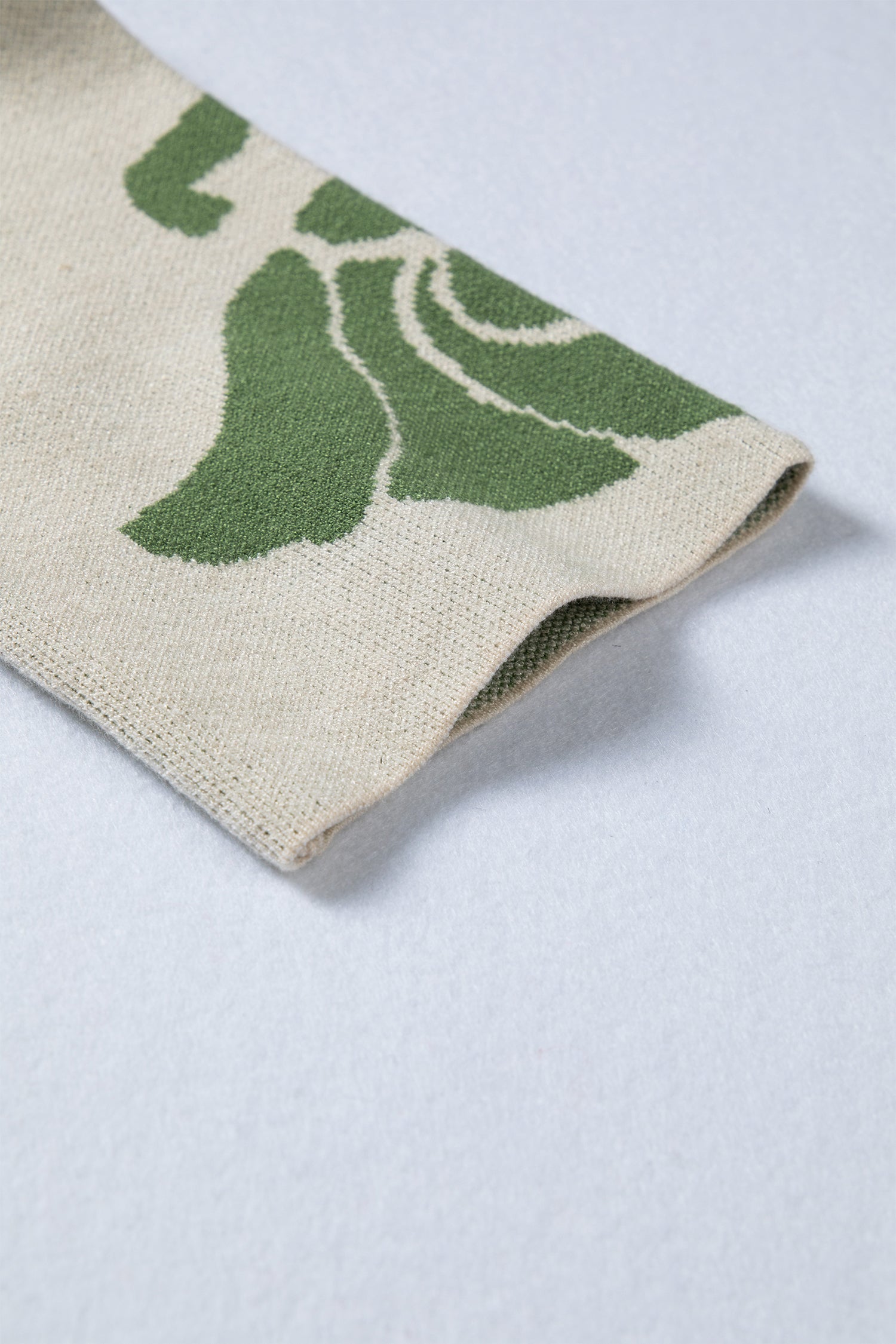 Bold Flower Pattern Wide Sleeve Baggy Sweater