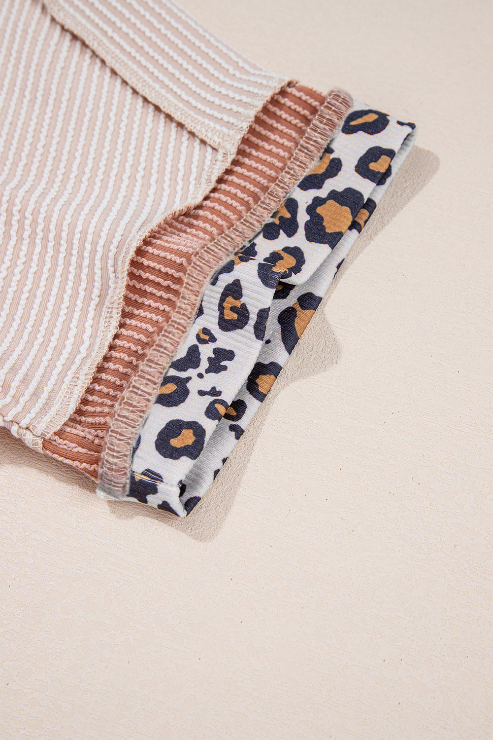 Leopard Patchwork Corded Knit Crew Neck T Shirt