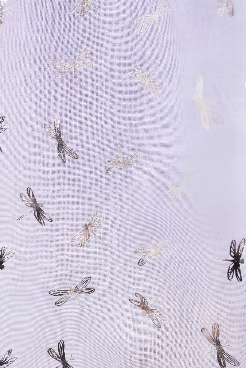 Add a dreamy touch to your outfit with this metallic dragonfly print scarf. Neriah is soft, floaty, and easy to throw on for everyday glam. Style it over basics or outerwear for a subtle shimmer finish.