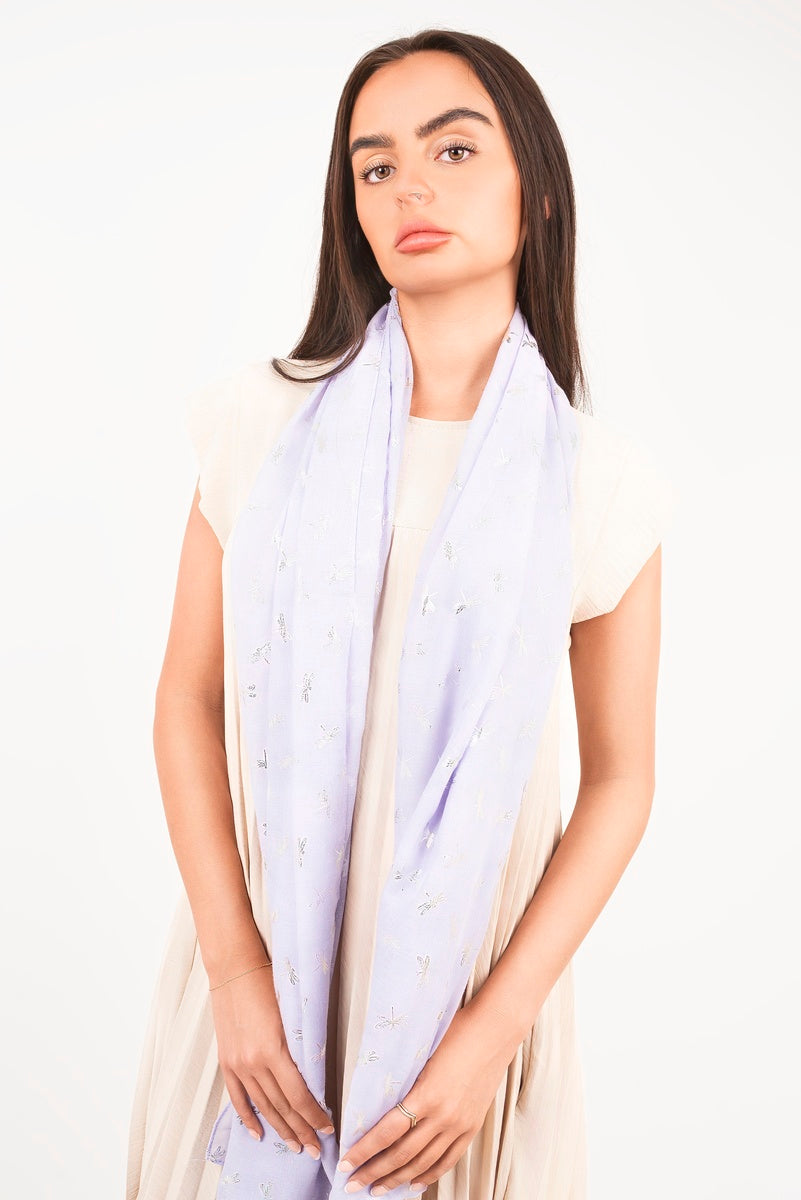 Metallic Dragonfly Print Lightweight Scarf