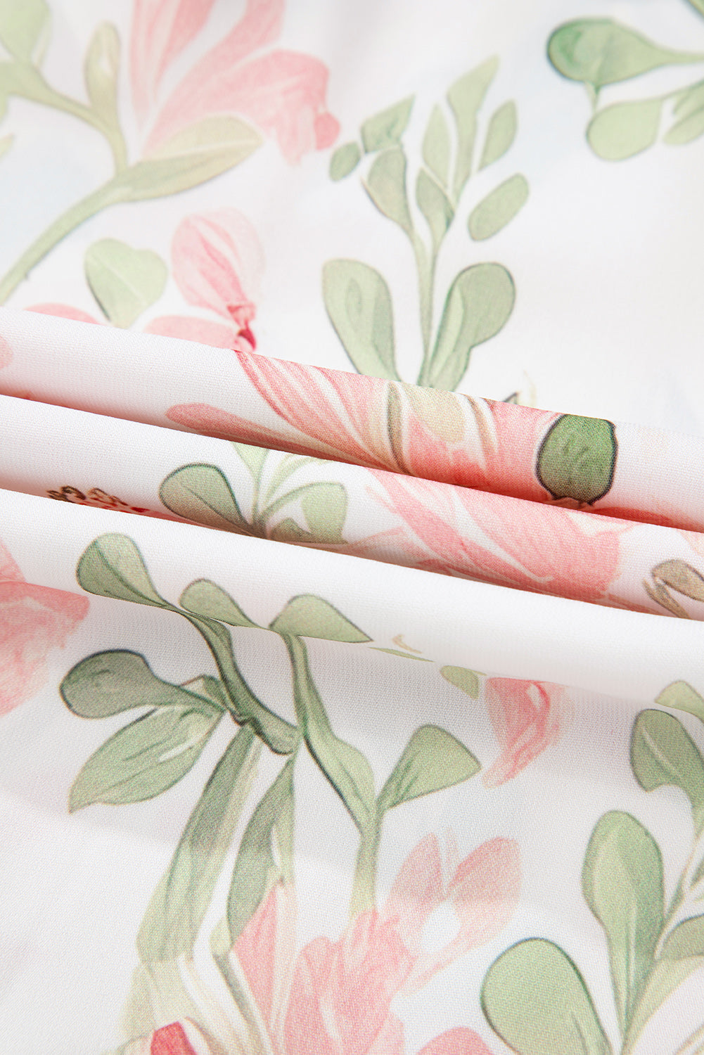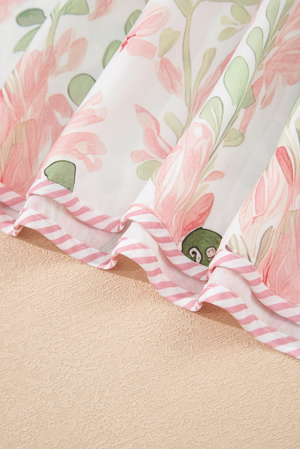 Floral Print Striped Contrast Tiered Ruffled Sleeve V Neck Blouse