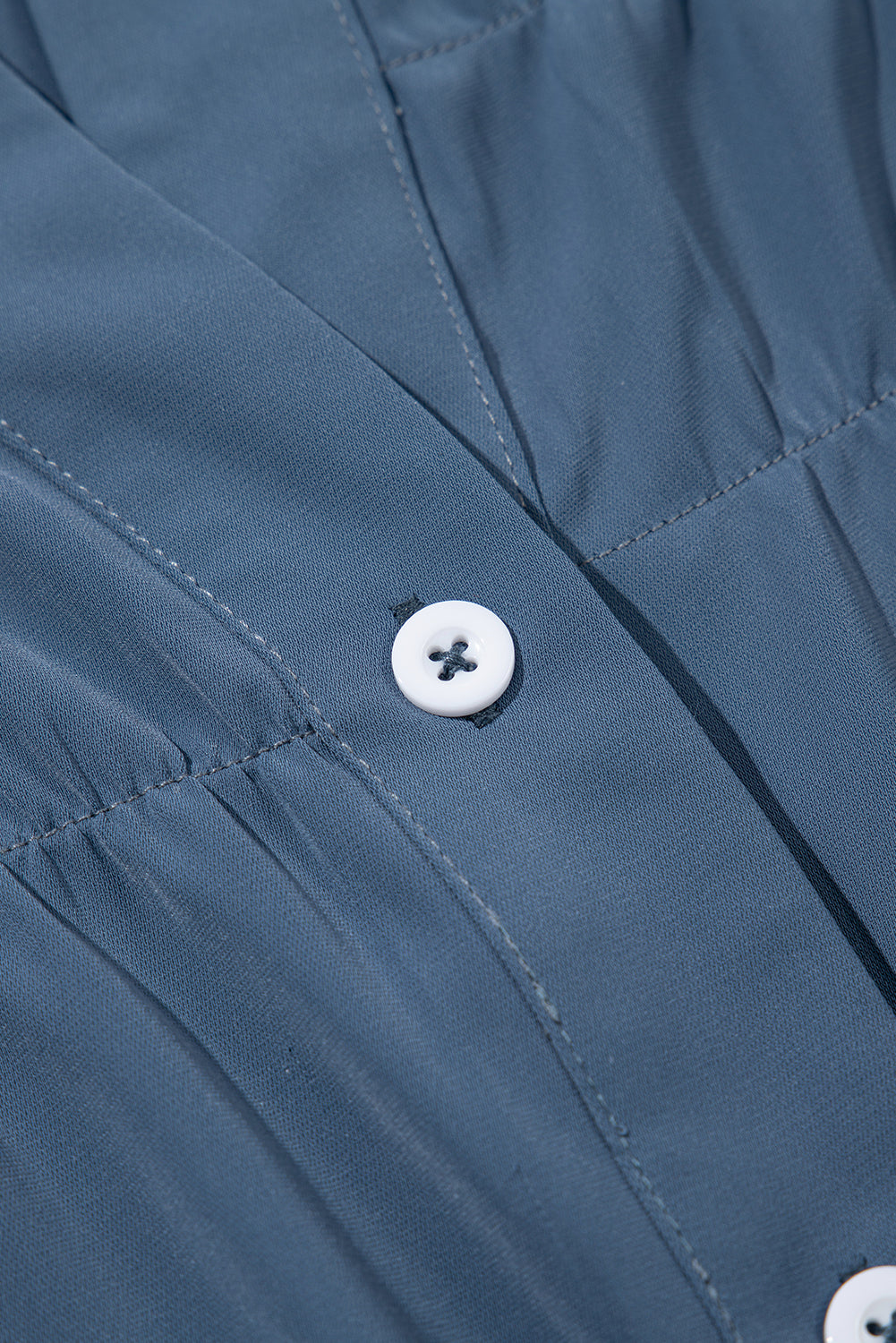 Solid Color Ruffle Ruched Short Sleeve Buttoned Shirt