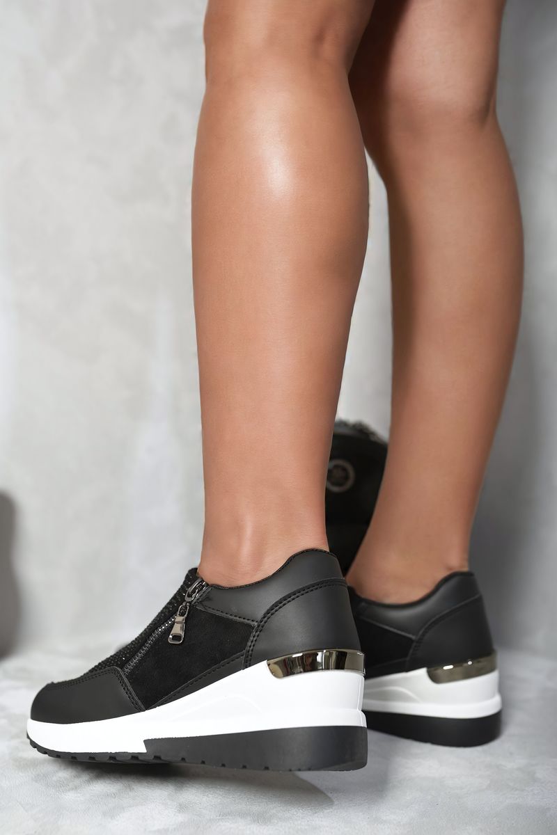 Sparkle in every step with the Judith Rhinestone Decor Zip Platform Trainers! These trendy kicks feature dazzling rhinestone details and a handy zip closure for easy wear. The platform style adds a fun lift, making them perfect for adding some glam to your everyday look. Slip them on and shine bright!