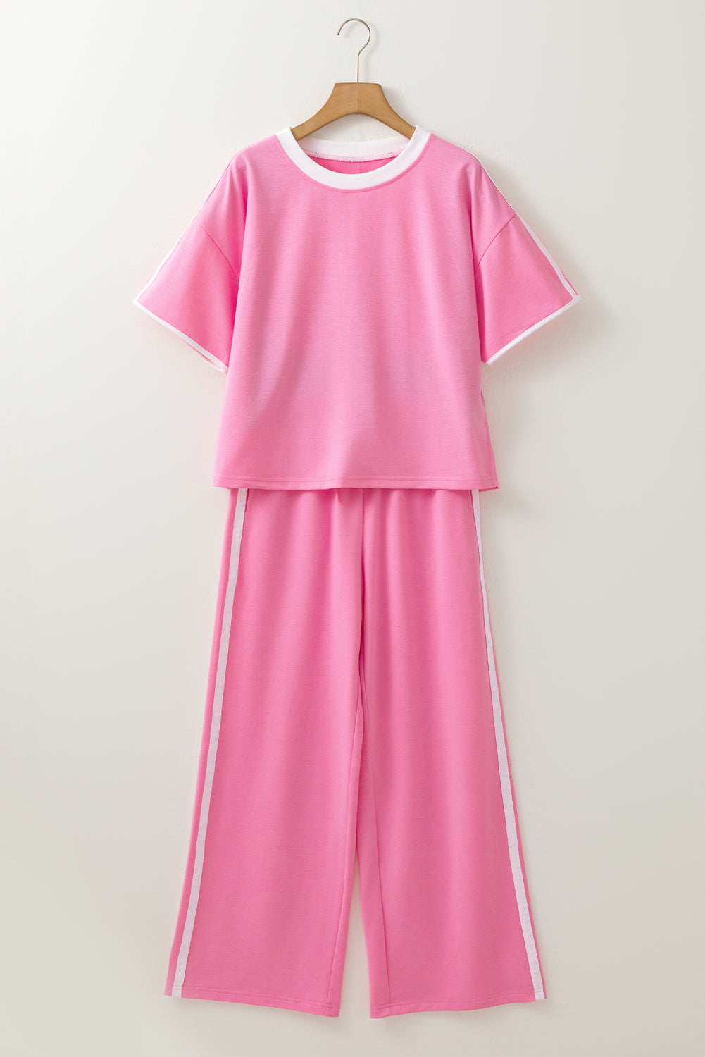 Varsity Stripe Detail Casual Tee and Pants Leisure 2pcs Set