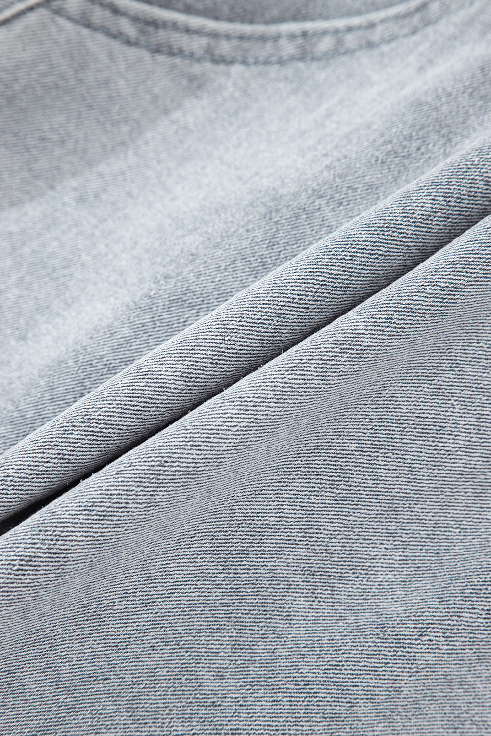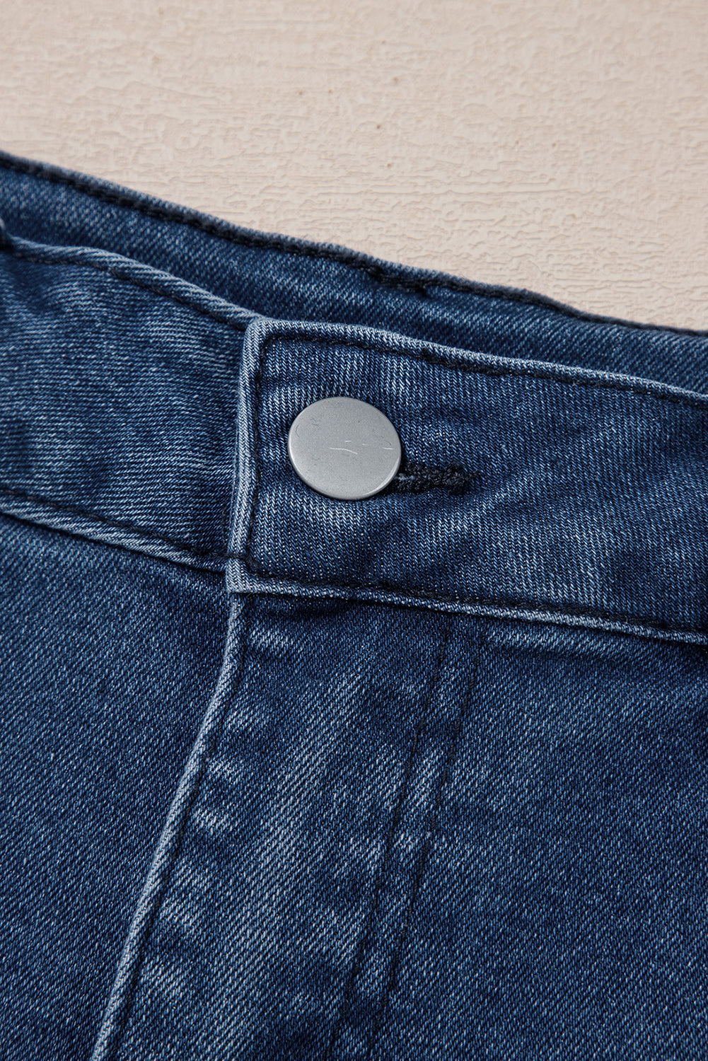 Scalloped Hemline Acid Wash High Waist Denim Shorts