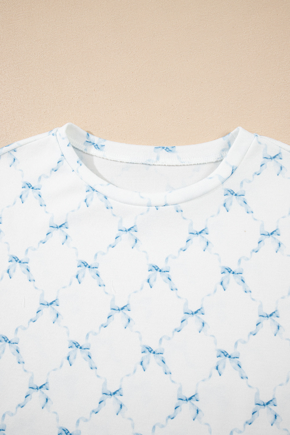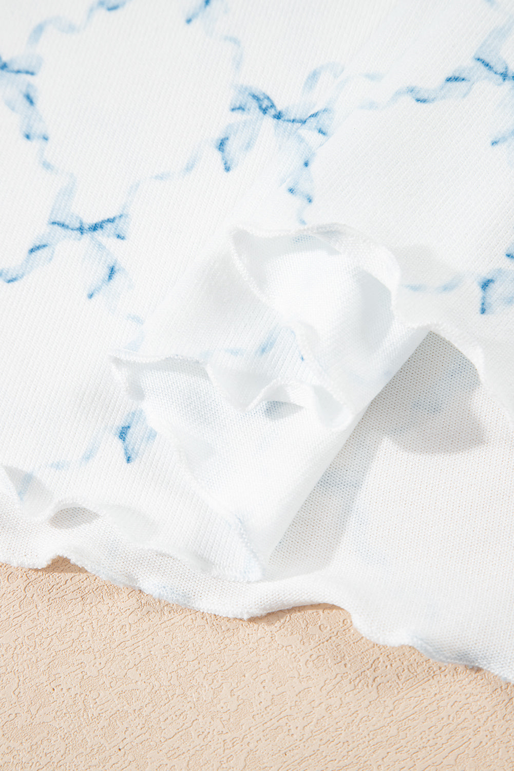Bow Knot Geometric Print Lettuce Trim Two Piece Lounge Set