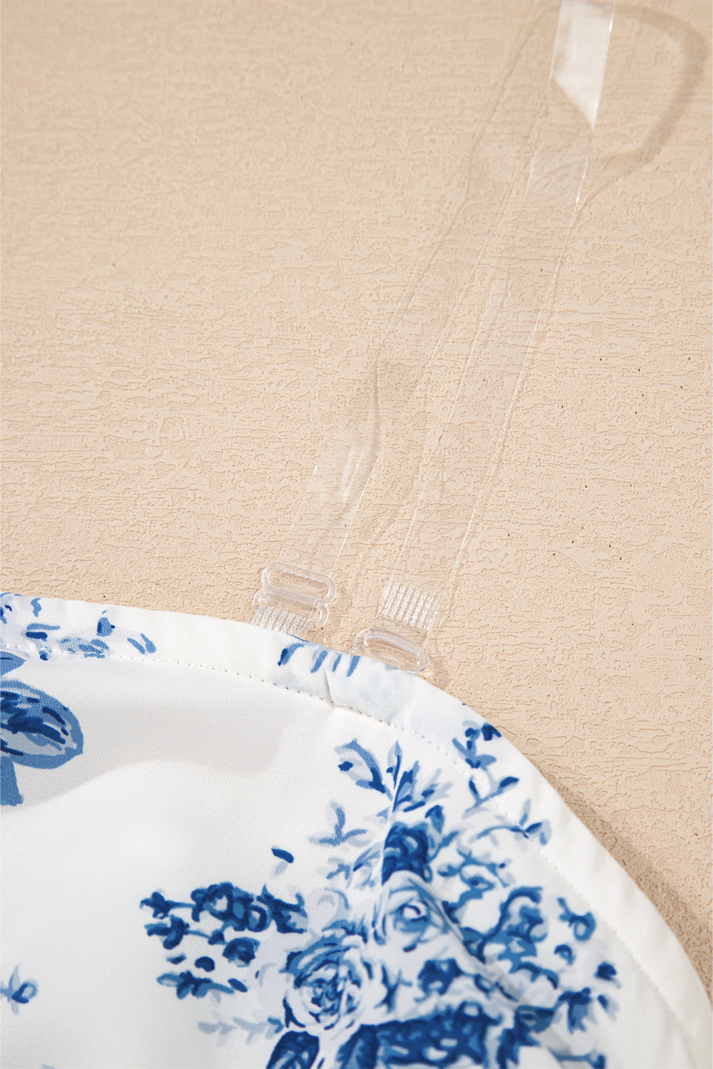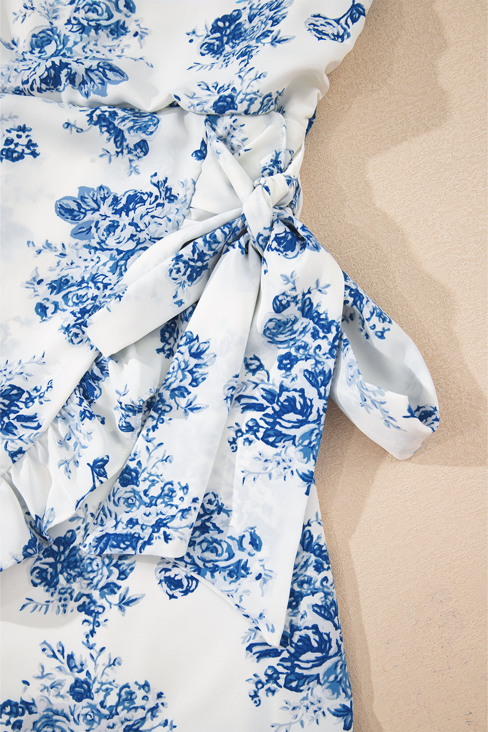 Floral Print Strapless Zipped Back Knot Waist Ruffled Romper