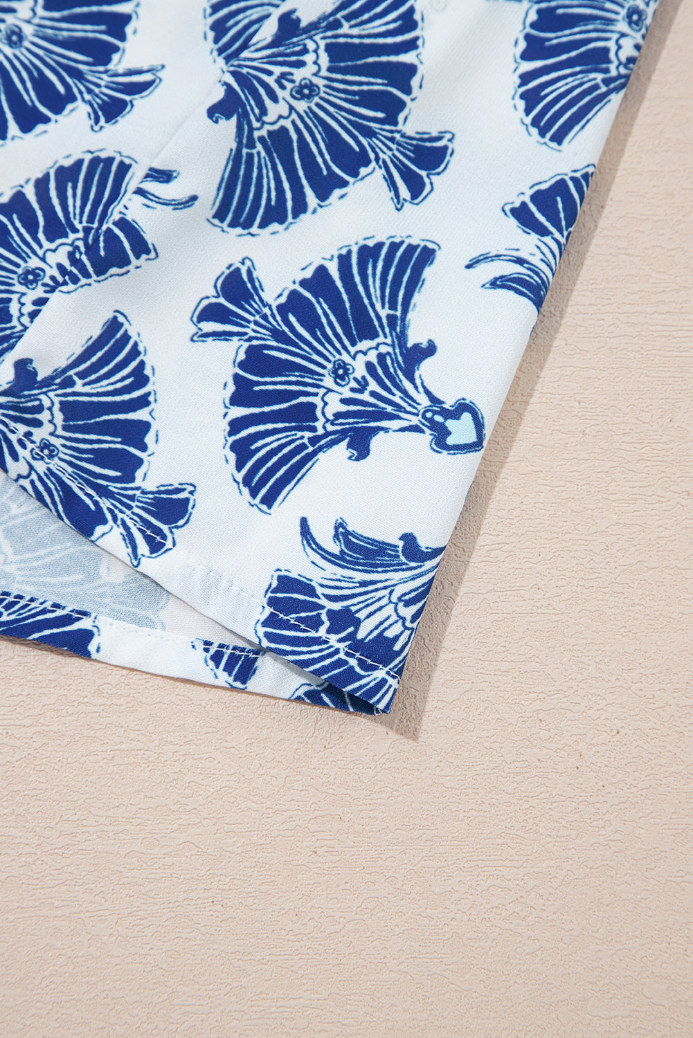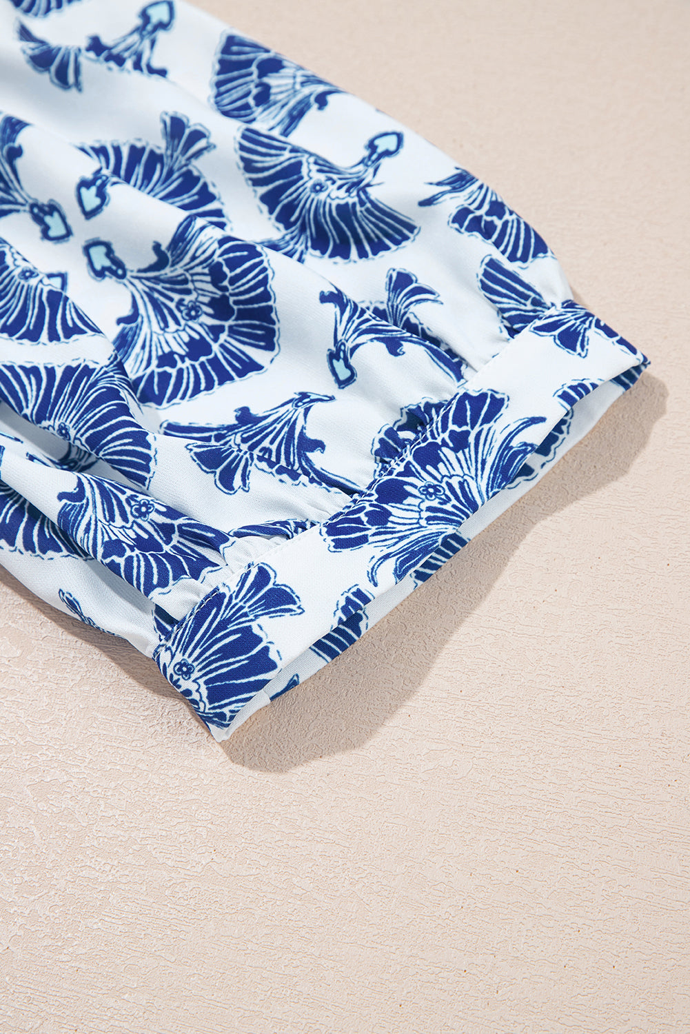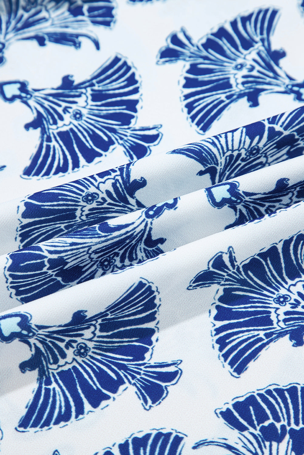 - Stylish blouse features a bold geometric print for a modern and eye-catching look.