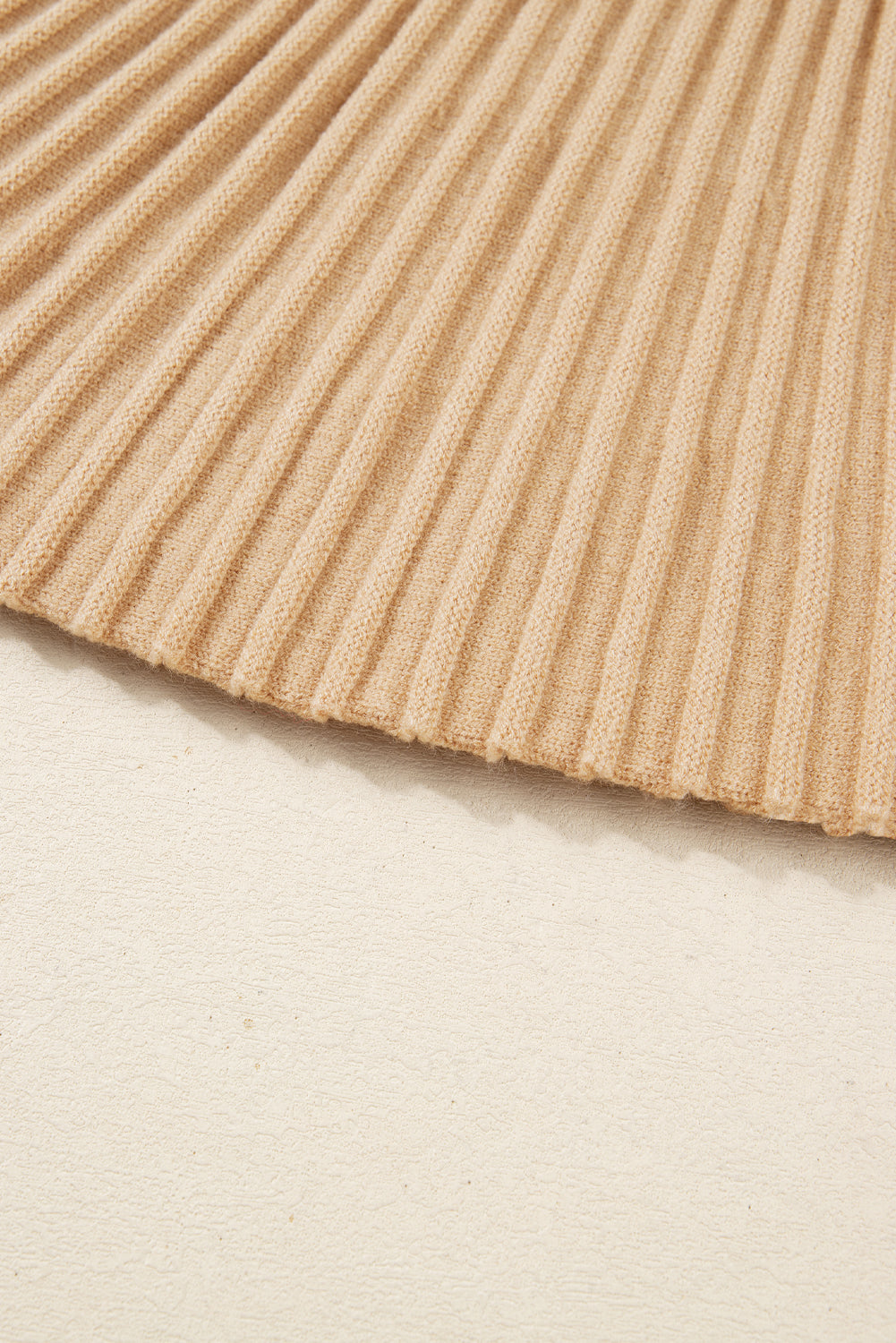 High Neck Puff Sleeve Sweater Pleated Mini Skirt 2pcs Knitted Outfit