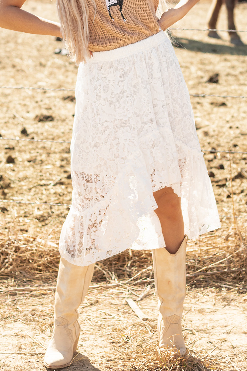 - This lace skirt is graceful and sweet in a flowy fit style.