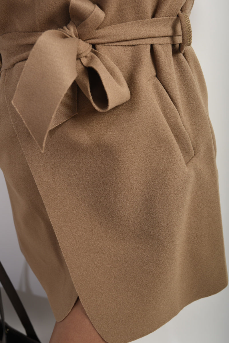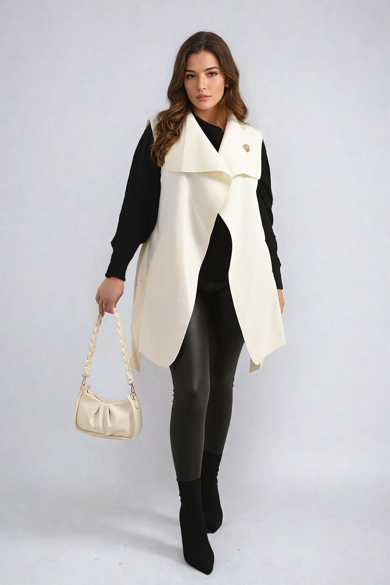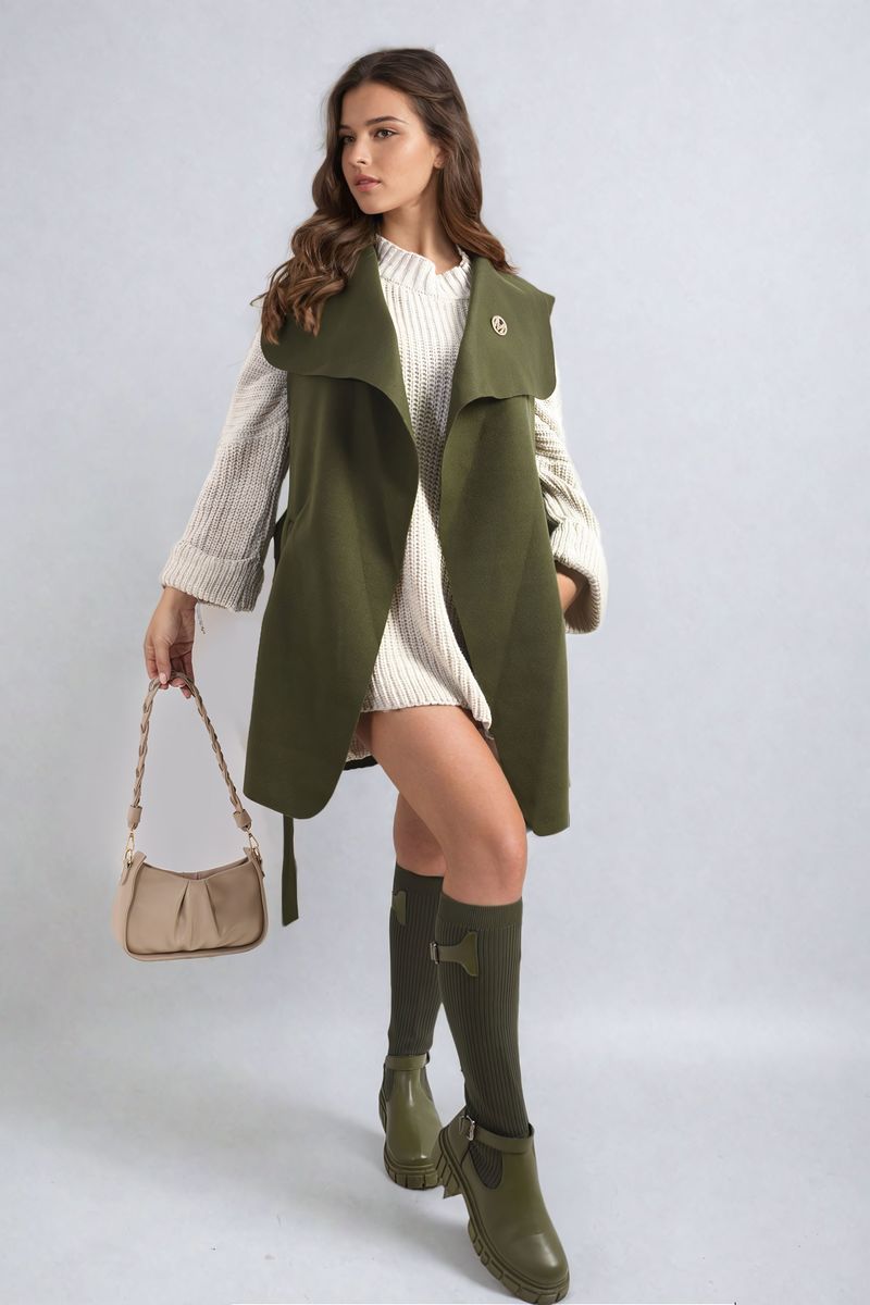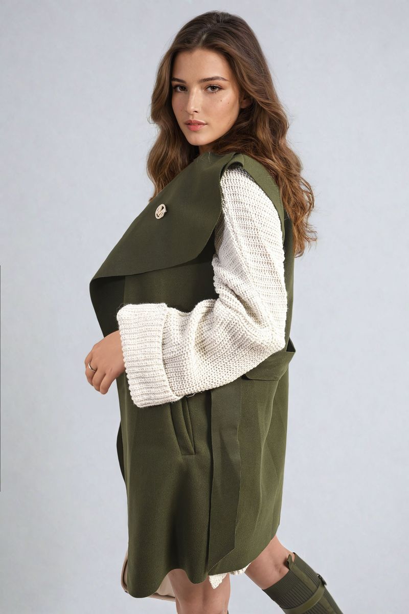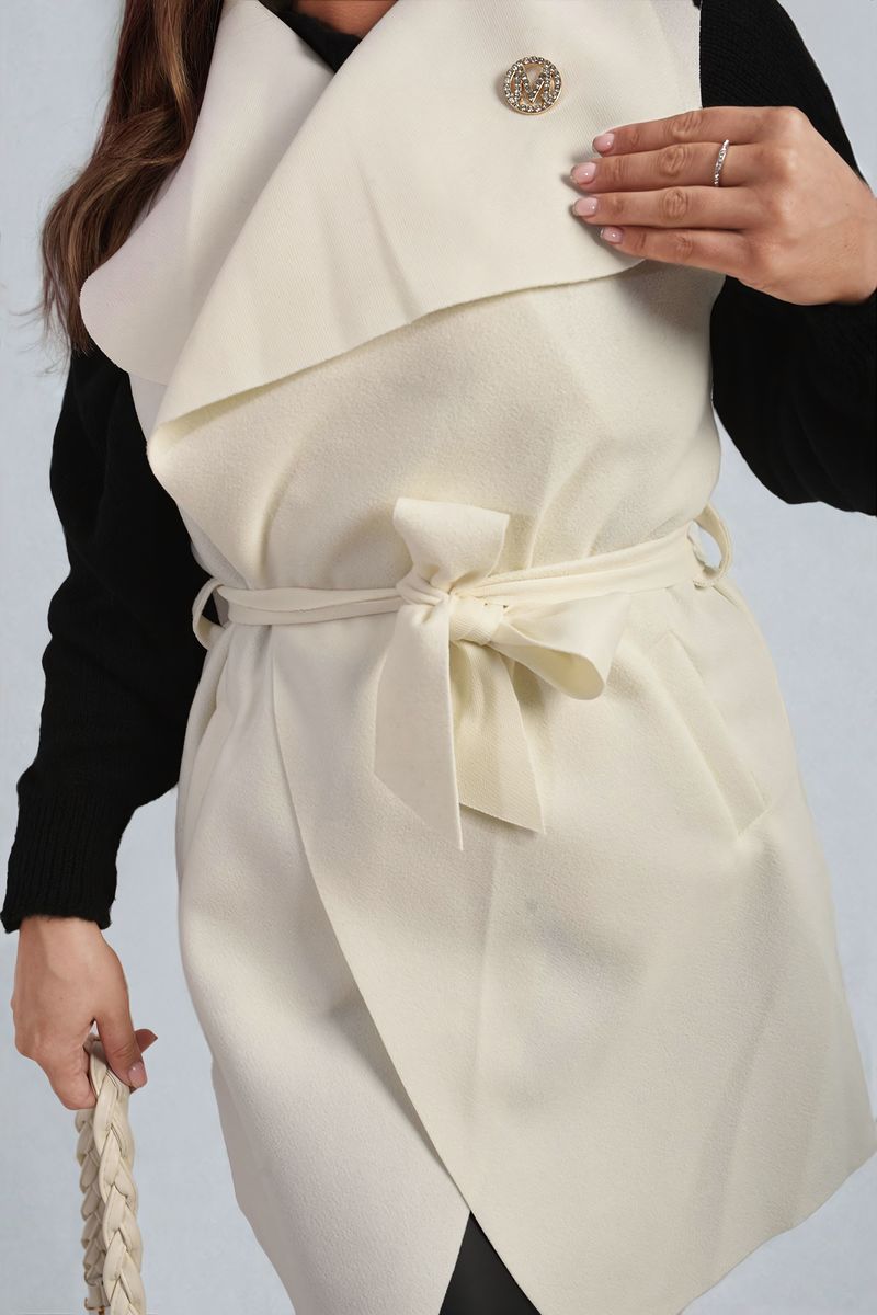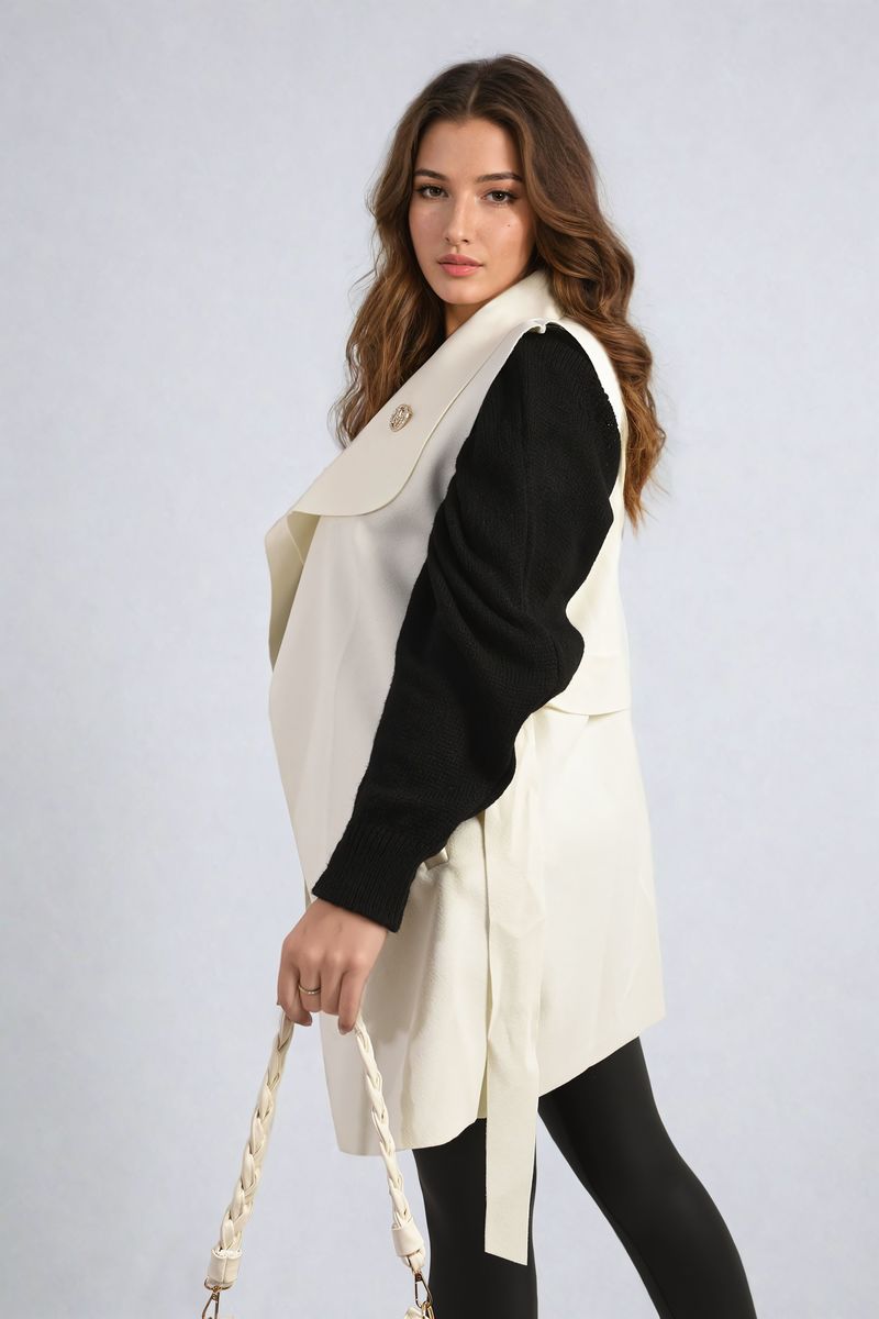Wide Lapel Sleeveless Belted Jacket